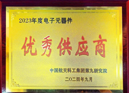 公司荣获中国航天科工集团第九研究院“优秀供应商”称号