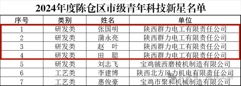 喜报!公司4人荣获宝鸡市青年科技新星称号